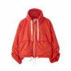 Lightweight nylon jacket with front flap pockets, long sleeves, a high neck, adjustable drawstring hem and front zip fastening.